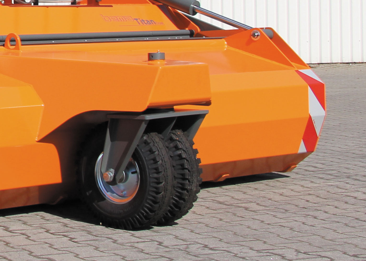 Kitartó használat megszakítás nélkül:Óriási gyűjtőedény hidraulikus mozgatással és két darab (Ø 460 x 145 mm) támasztó kerékkel (felfújható gumival).