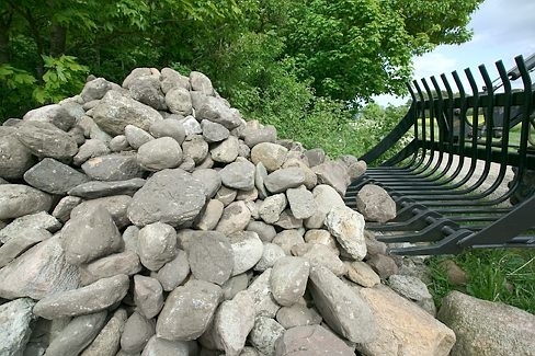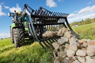 A jellegzetes kialakítás jelentős lehetőséget biztosít a munkagép megtöltésére anélkül, hogy a kanálbanlévő kő kiesne. Az elülső végére edzett fogak vannak felszerelve, amelyek enyhén lefelé mutatnak. 3 pontos felfüggesztéssel is kapható.