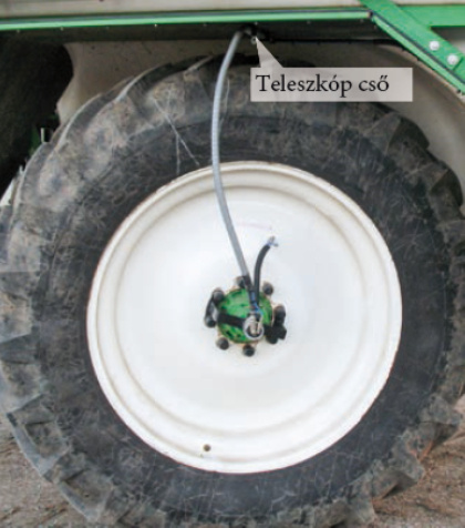 A kerékhez vezető levegővezetékek a sárvédőn lévő teleszkópos csövön keresztül a kerék közepéig vannak vezetve, amellyel a forgó kerék oldalirányú távolsága egyedileg állítható.