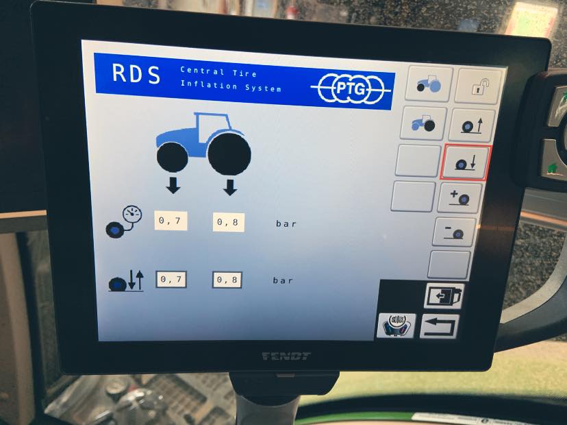 • Az abroncsnyomás csökkentésével a szántóföldön az abroncs erősebb belapulása és közel 100%-kal nagyobb felfekvő felület növekedése érhető el • A talajnyomás ezáltal jelentősen csökken és a nyommélység akár 50%-kal is csökkenhet • A laposabb nyomvályúk a gyökérzet számára jobb átjárhatóságot biztosítanak, így ezeken a felületeken akár 6%-kal nagyobb termésátlag érhető el • A nagyobb felfekvő felületnek köszönhetően több profilborda kapaszkodik a talajba; a vonóerő akár 20%-kal, a területteljesítmény akár 10%-kal is növekedhet, egyidejűleg az üzemanyag fogyasztás 15%-kal való csökkenése is elérhető • Mindemellett a csökkentette abroncsnyomás jelentősen puhább, ember-, és gépkímélő közlekedést eredményez a szántóföldön (50%-kal kevesebb lengés) • Az elvégzett talajmunkát követően az abroncsok ismét gyorsan a közúti abroncsnyomásra fújathatók, így biztosítva a szükséges közlekedésbiztonságot. • A magasabb közúti abroncsnyomás ezen kívül az üzemanyag fogyasztást (-5%) és a gumikopást (-20%) is csökkenti *Forrás: LU Mitgliederinfo 2003, Dr. Weibach, Uni Kiel