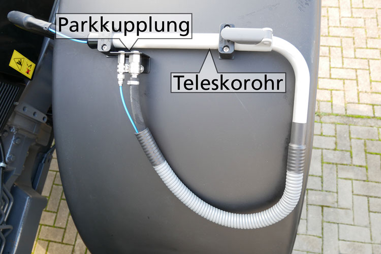 Első keréknél kívül elvezetett vezeték. Vezeték keréktől való távolsága teleszkópos cső segítségével állítható.