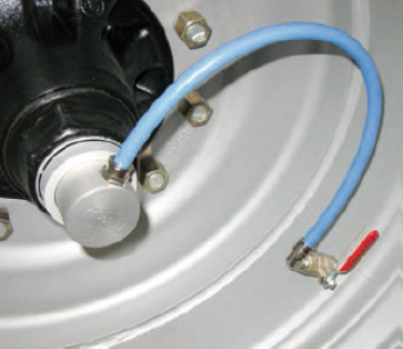 A kerékhez vezető levegővezeték a tengelyen keresztül van elvezetve. A kompakt, 1 vezetékes forgó átvezetést ezután a tengelyagyba csavarják, amely hosszú távú zsírfeltöltéssel van ellátva, amit kiváló minőségű tömítések és csapágyak jellemeznek. A zsírsapkát a BPW-vel együttműködésben kifejlesztett tömítőrendszer tömíti. amely lényegében egy szorítógyűrűből és egy ajakos tömítésből áll. A keréktárcsába golyós csap van felszerelve, amelyet a jármű leállítása után kézzel kell zárni.