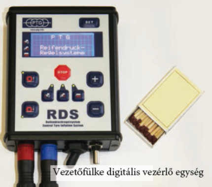 Digitális vezérlés: Az elektronikus doboz egy univerzális vezérlőegység, amely lehetővé teszi a felhasználó számára a traktor és az utánfutó gumiabroncs-felfújó rendszerének egyidejű működtetését. Lehetőséget ad arra is, hogy egy gombnyomással hozzáférjen az előre beállított légnyomásadatokhoz. Az aktiválás után a rendszer beállítja a gumiabroncs nyomását a kiválasztott gumiabroncsokban, mielőtt automatikusan kikapcsolna. A rendszer egy gombnyomással bármikor kikapcsolható.