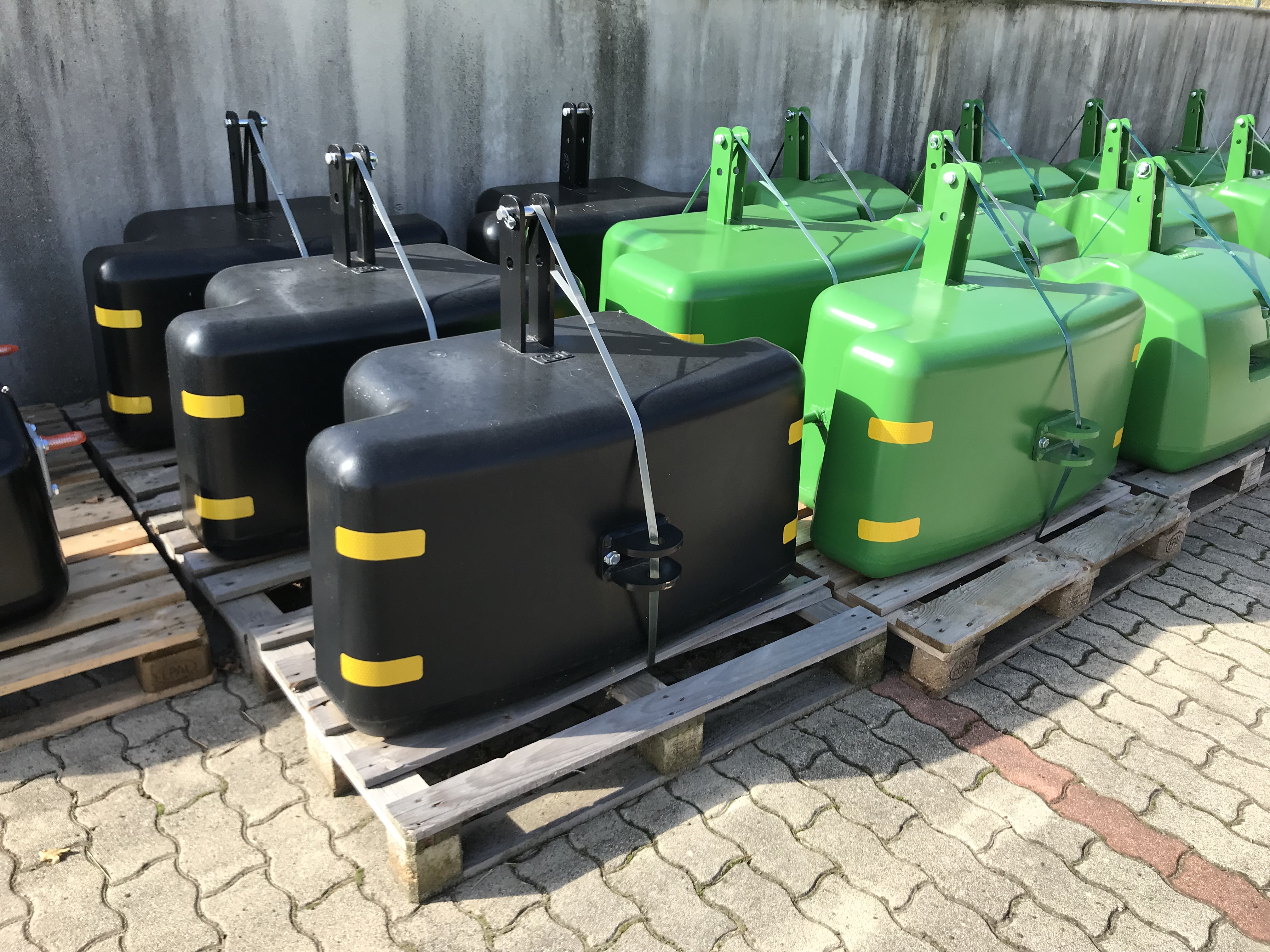 Anyaga: Vasbeton; Tömege: 450-1450 kg; Színek: fekete, JD zöld; CLAAS szürke; AGCO szürke